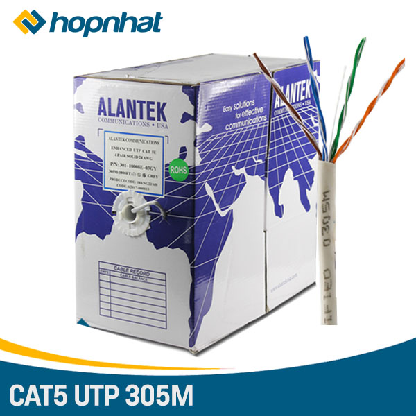 Cáp xoắn Alantek Cat5E Twisted Pair được thiết kế để hỗ trợ ứng dụng băng thông rộng lên đến 1 Gigabit Ethernet. Cáp bao gồm các dây dẫn bằng đồng rắn 24 AWG cách điện cách nhiệt với cách điện Polyethylene Độ Density Cao (HDPE). Đối với cáp không được che chở, các dây dẫn cách điện được xoắn thành đôi và hoàn thành với một Jacket ngoài. Đối với cáp được bảo vệ, thêm một lớp nhôm lá mỏng bao phủ 4 cặp dây dẫn cách điện.