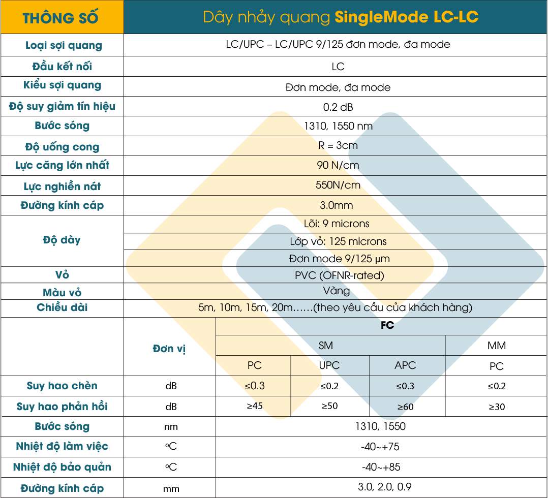 Dây nhảy quang LC LC Singlemode có đường kính 2.0mm, 3.0mm là các đường kính dây cơ bản và có các độ dài cơ bản như 5m, 10m, 15m, 20m... tất nhiên việc lựa chọn dây cáp quang có độ dài như nào sẽ tùy thuộc vào nhu cầu sử dụng của từng hệ thống.