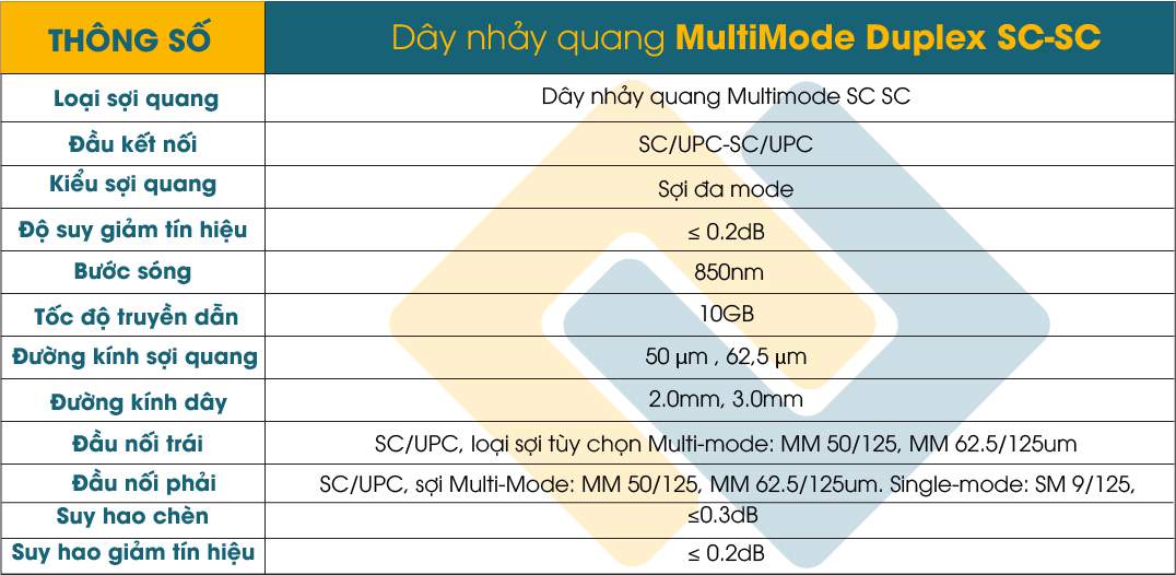 - Đầu nối phải: SC/UPC, loại sợi tùy chọn Multi-mode: MM 50/125, MM 62.5/125um