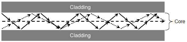 Các tia sáng Axial, High Order và Lower lan truyền trong sợi quang theo các đường có chiều dài khác nhau. Do dó, các tia sáng – được truyền tại một thời điểm với cùng vận tốc – lan truyền đến cuối sợi quang ở những thời điểm khác nhau. Sự chênh lệch về thời gian giữa các tia sáng này được gọi là Dt. Hiện tượng này gọi là hiện tượng tán sắc.