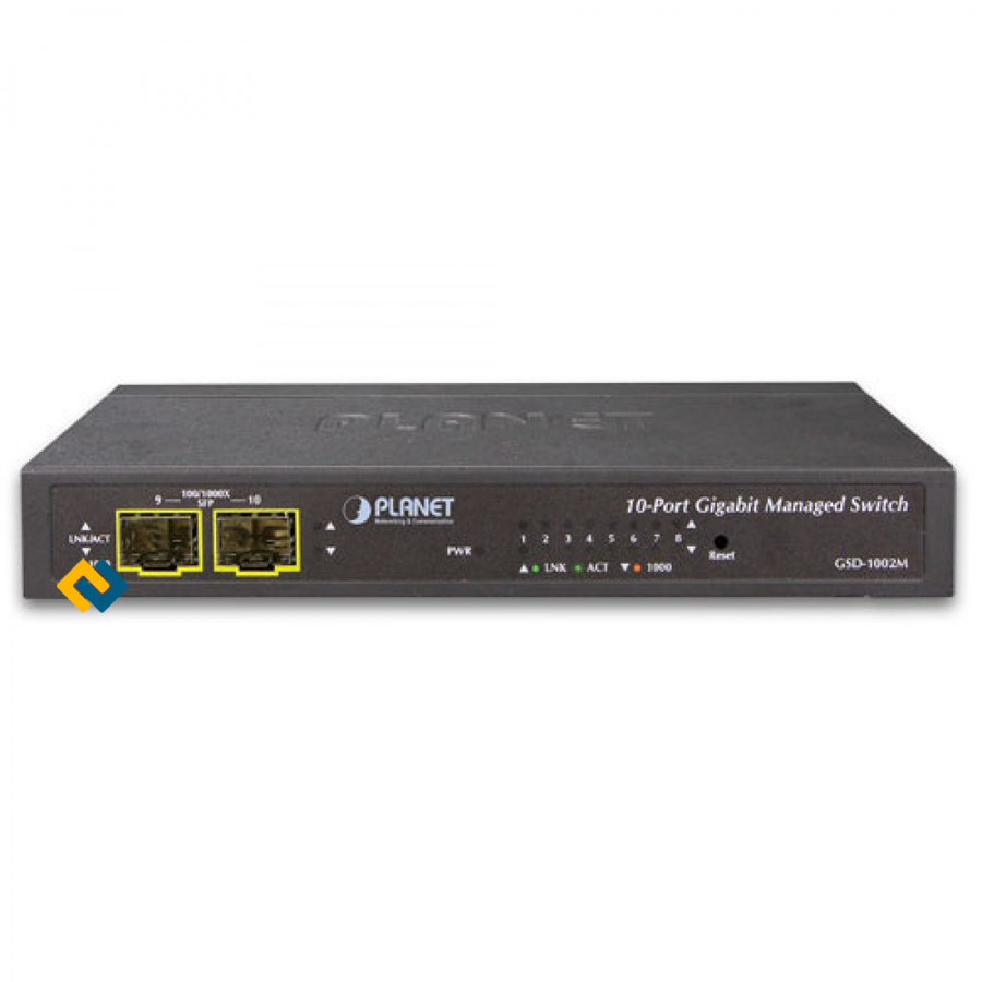 PLANET GSD-1002M là một cổng 8/10/100 / 1000Mbps + 2 cổng 100/1000X SFP được thiết kế đặc biệt để xây dựng xương sống Gigabit đầy đủ đáng tin cậy để truyền tải và chuyển tiếp dữ liệu tới mạng từ xa qua sợi quang. Nó cung cấp 8 cổng 10/100 / 1000Base-T đồng và 2 thêm 100 / 1000Base-X SFP giao diện sợi quang với hệ thống điện kép. GSD-1002M cung cấp giao diện quản lý IPv6 / IPv4 tiên tiến và thân thiện với người sử dụng cũng như các chức năng chuyển đổi L2 / L4 phong phú. Đây là khoản đầu tư tốt nhất cho các doanh nghiệp / SOHOs mở rộng hoặc nâng cấp cơ sở hạ tầng mạng của họ.